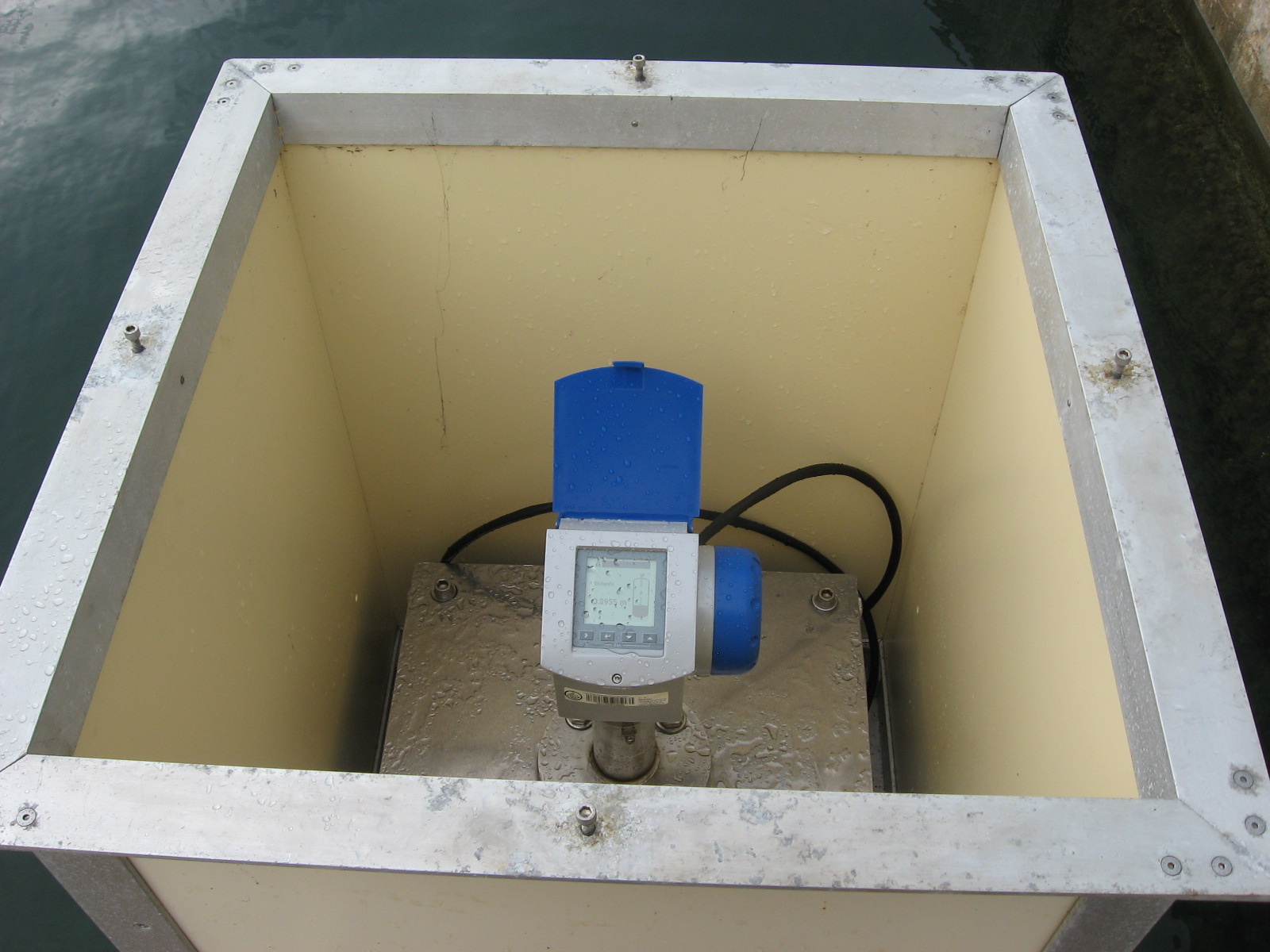 Un télémètre radar Optiflex remplace donc dorénavant le télémètre à ultrason en place depuis Juin 2000. Il permet toujours, comme l’ancien, de mesurer le niveau de la mer toutes les dix minutes et de faire parvenir les données, par interrogation à distance, au SHOM.