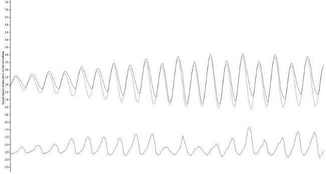 La courbe est déformée car l’eau ne circule plus normalement dans le tube ou le puits. En particulier le tube ne parvient plus à se vider. Ce phénomène peut être dû à un ensablement, envasement, une obstruction par un objet…