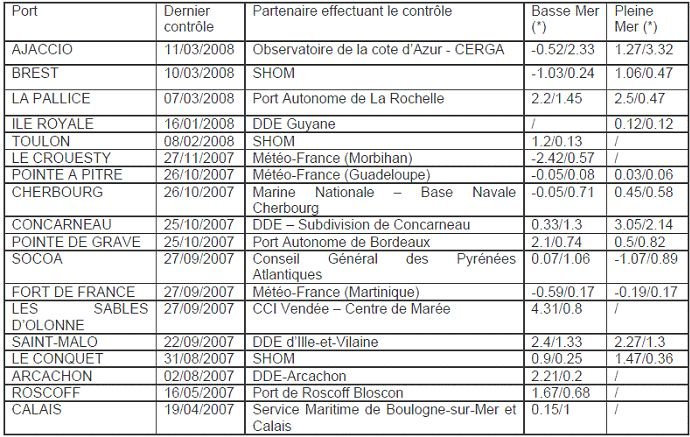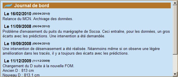 Chaque correction fait l’objet d’un commentaire dans la base de données du SHOM et les informations principales sont répercutées sur le site SONEL.